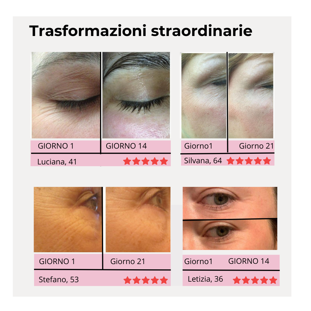 Risultati clinicamente testati su 100 utenti con miglioramenti visibili già dalle prime settimane